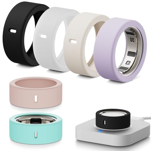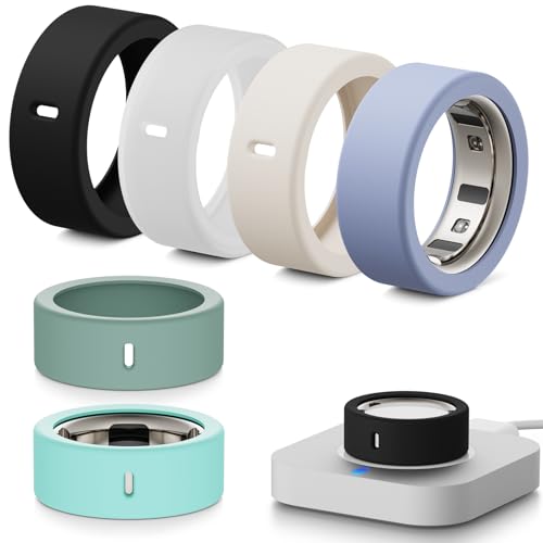 Lot de 6 coques de protection pour anneaux compatibles avec Oura Ring Gen 4/Oura Gen 3/Ultrahuman Ring Air, charge de surport avec étui, anneaux en silicone élastique anti-rayures pour homme et femme