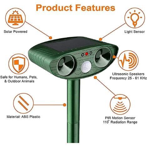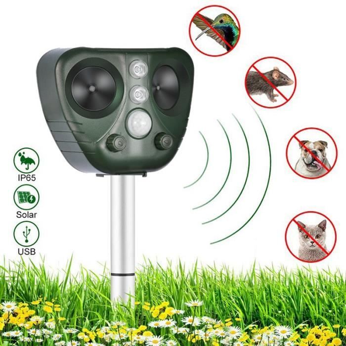 Repulsif Chat Exterieur Ultrason - Anti Chien Pigeons Souris Rats - Solaire USB Multifonctions LED Sonore - Pique Vibrations - Chasse Taupe - Repousse Rongeur - Appareil Puissant Efficace