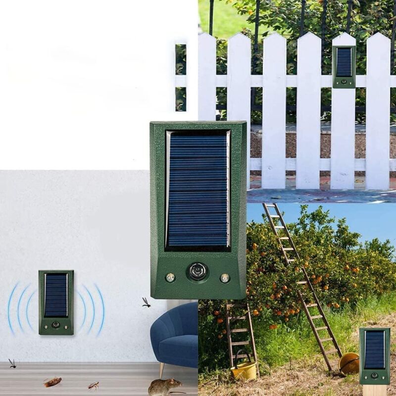 Répulsif Chat Ultrason, Solaire Effaroucheur Oiseaux Exterieur, Charge USB, Repulsif pour Animaux à Ultrasons, Rats, Chiens, Oiseaux, Renards
