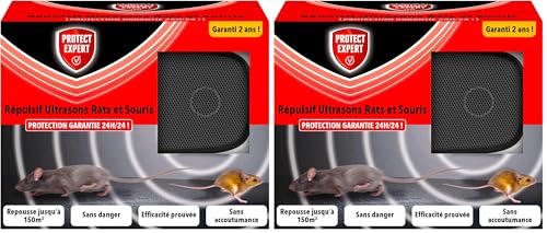 PROTECT EXPERT Ultrason Rats & Souris - Répulsif Anti Rats & Souris - sans Accoutumance - Repousse Jusqu'à 150m² - Protection Garantie 24h/24 - Noir ULTRARASOU (Lot de 2)