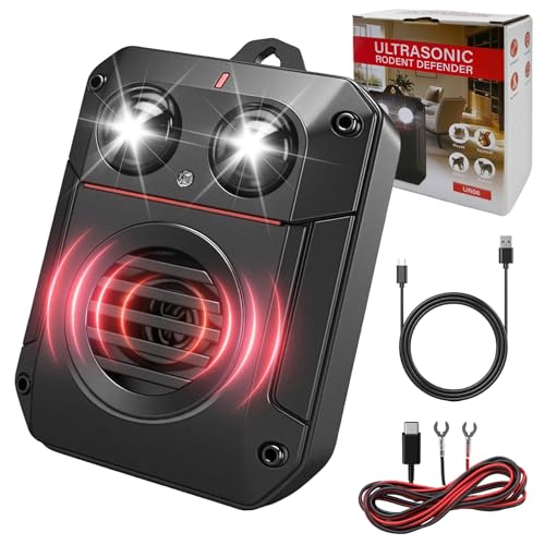 PATTLER® Anti Rongeur avec lumière | Repulsif Ultrason Anti Loir et Anti Martre | Anti Martre Voiture avec Alimentation par Batterie de Voiture 12V, Piles AA ou USB | Anti Rongeur Voiture | 1 Unité