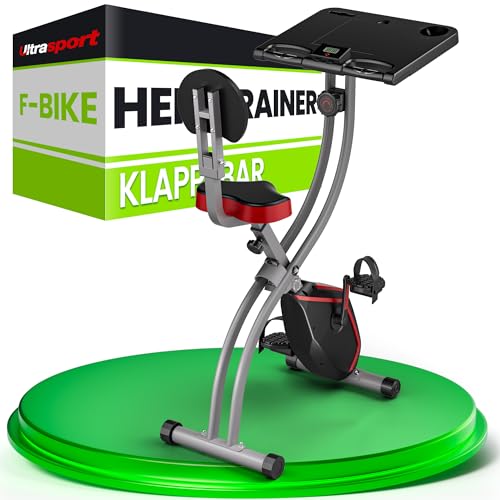 Ultrasport F-Bike, Vélo d'exercice Pliable avec Ordinateur d'entraînement, 8 Niveaux résistance, Hauteur réglable, Support sécurisé, vélo Bureau, Poids Max. de l'utilisateur 110 kg, Noir/Rouge
