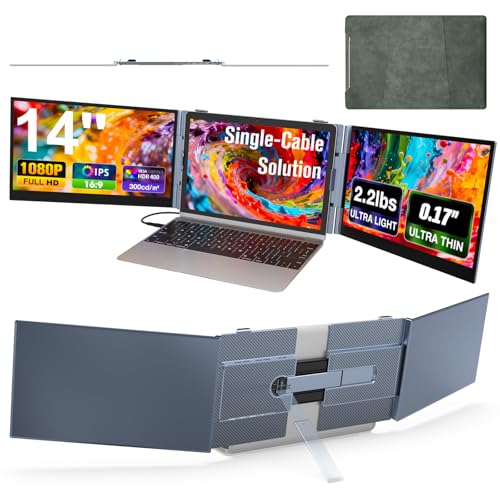 SMISEACOW Écran Portable pour Ordinateur Portable, Ultra-Fin et léger, 14 Pouces FHD 1080p IPS Dual, Pilote par Un Seul câble, Plug & Play pour Ordinateurs Portables, Compatible Windows/Mac/Linux