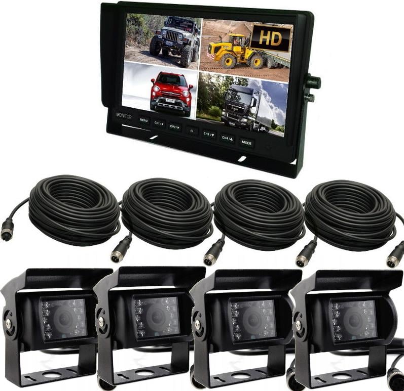 Kit comprenant un moniteur AHD 10'', une caméra QUAD 4 x 720P, un câble
