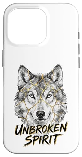 Graphisme Artistique Kintsugi Wolf Unbroken Spirit Resilience Coque pour iPhone 16 Pro