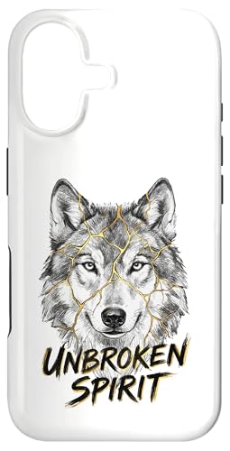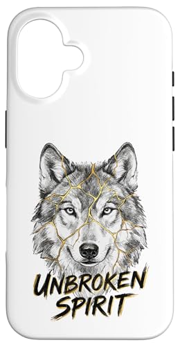 Graphisme Artistique Kintsugi Wolf Unbroken Spirit Resilience Coque pour iPhone 16 Plus