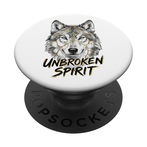 Graphisme Artistique Kintsugi Wolf Unbroken Spirit Resilience PopSockets PopGrip Adhésif