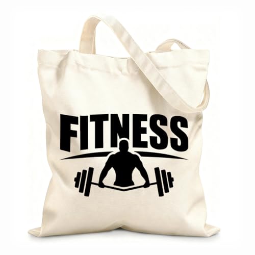 AILOONG Logo de fitness représentant un homme soulevant une barre d'haltères Sac en toile à fond renforcé tissu épais de 12 oz Utilise comme sac cadeau 31x36cm Moyen