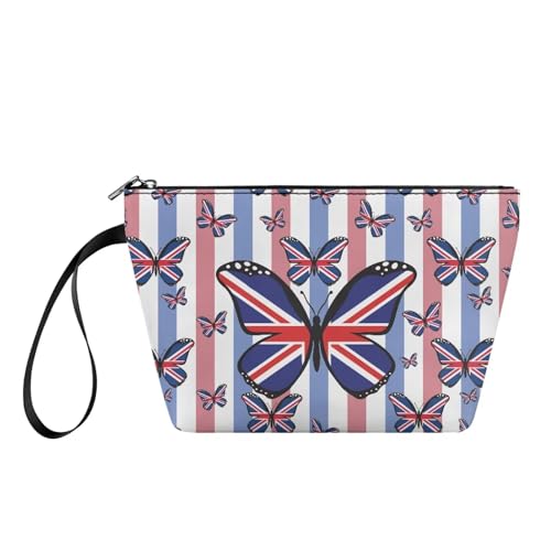 YDFISH Trousse de maquillage pour femme - Trousse de toilette en PU avec fermeture éclair - Trousse de toilette de voyage portable - Sac de vacances tendance - Motif papillon Union Jack, Union Jack