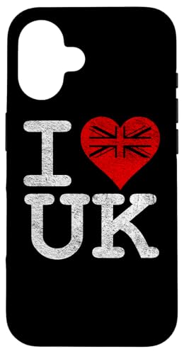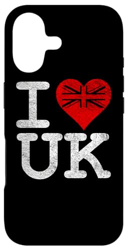 Drapeau Union Jack « I Love Heart The UK » Coque pour iPhone 16