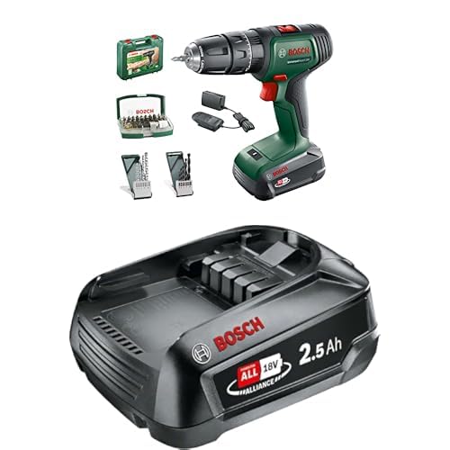 Bosch perceuse à percussion sans fil UniversalImpact 18V (1 Batterie, système 18 V, dans Coffret de Transport) – Édition Amazon + Bosch Batterie PBA 18V 2.5Ah W-B 1600A005B0 Noir