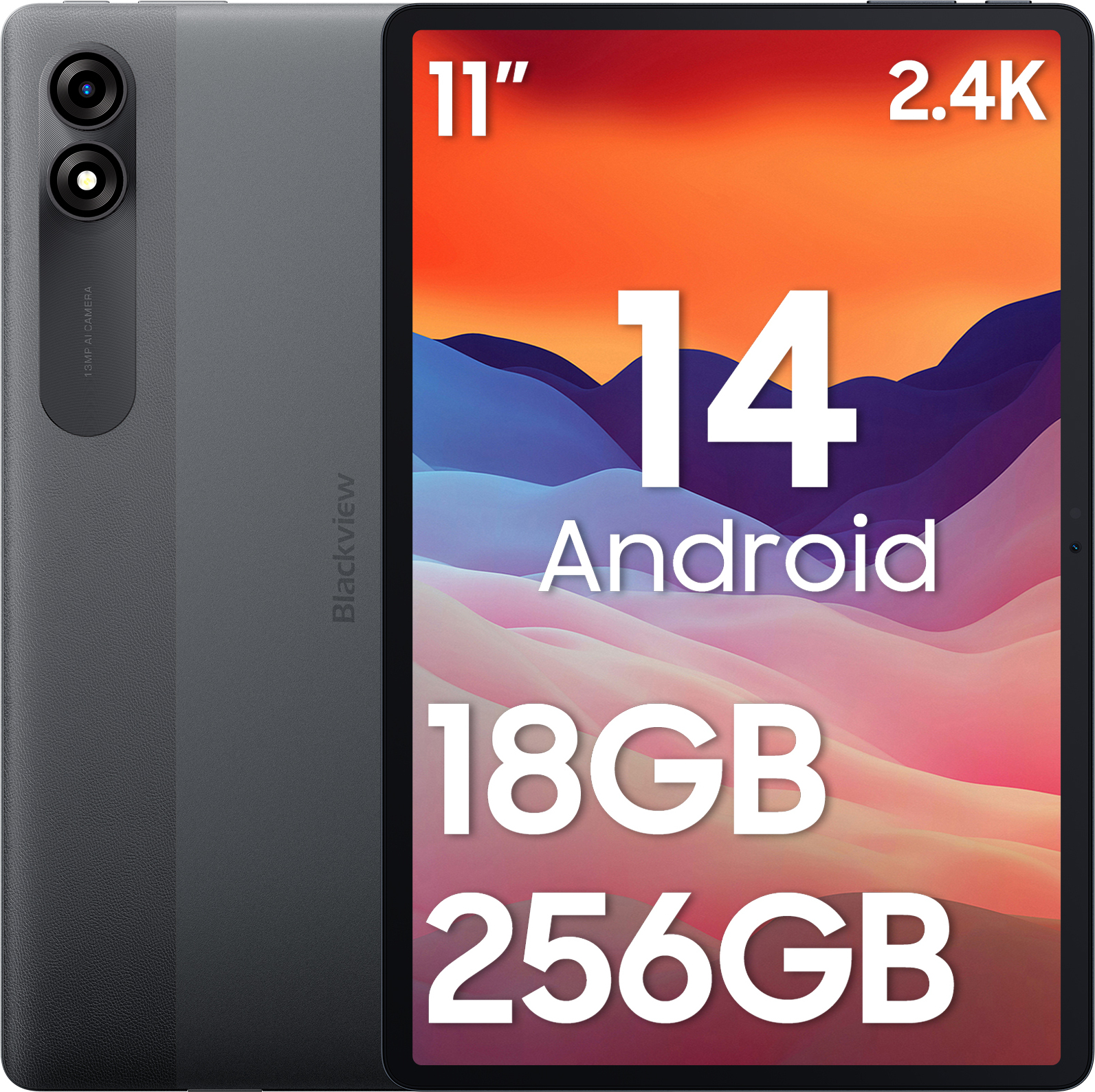 Blackview 11'' Android 14 Tablet Tab 9 WiFi 2.4K FHD-IPS display, 18GB+256GB (extensible), 8MP+13MP camera, 8200 mAh 10 W, Face Unlock, gris