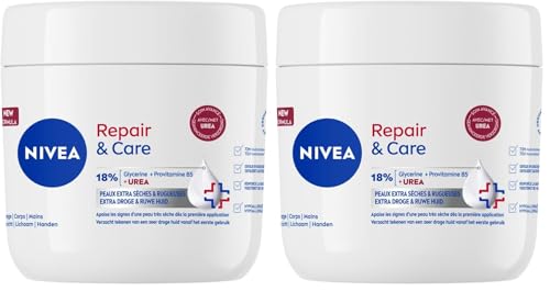 NIVEA Repair & Care - Crème Corps, Visage & Mains - Hydratation 72H - Exfolie En Douceur - Protège La Barrière Cutanée - Glycérine, Provitamine B5 & Urée - Peaux Extra-Sèches & Rugueuses - 400 ml