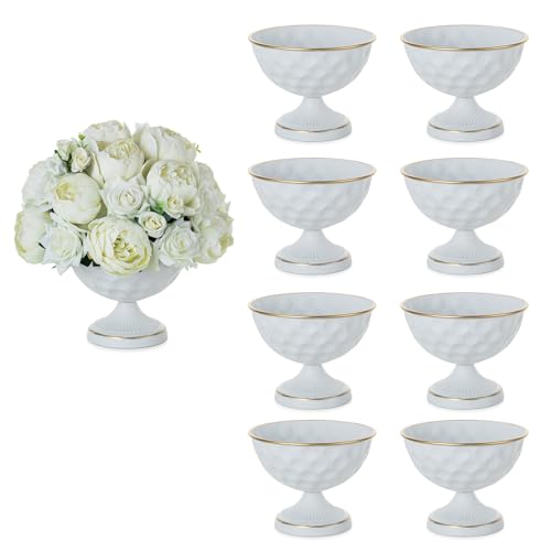 Sziqiqi Vase Mariage Blanc: 13 cm Haut Vase Urne Centre de Table Lot of 10 - Metal Pots pour Fleur Arrangement pour Fete Anniversaire Bapteme Reception