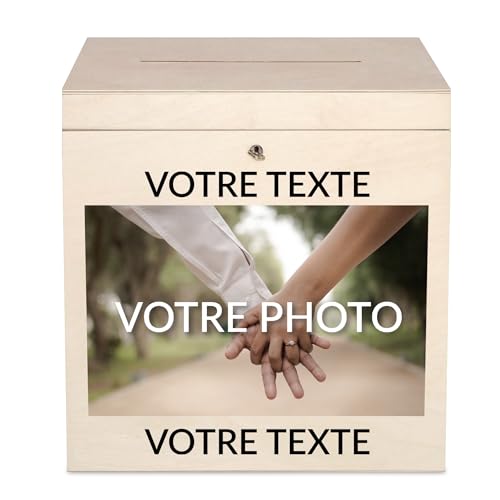 Creative Deco Boite en Bois pour Enveloppes | 29 x 25 x 15 cm (+/- 0,5 cm) | Boîte Personnalisée pour Cartes avec Votre Texte + Photo | Urne Mariage et Anniversaire