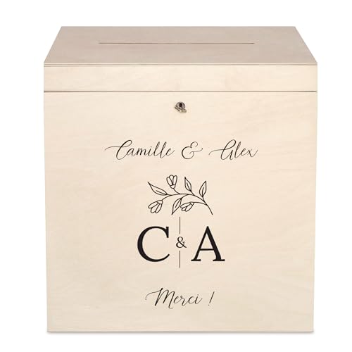 Creative Deco Boite en Bois pour Enveloppes | 29 x 25 x 30 cm (+/- 0,5 cm) | Boîte Personnalisée pour Cartes avec Initiales des Mariés | Urne Mariage Cadeau | Tirelire Personnalisable