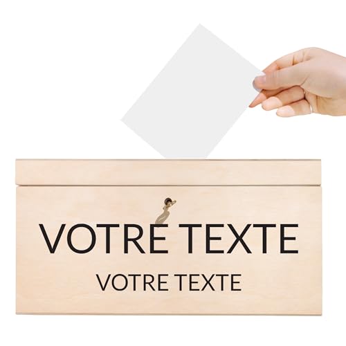 Urne personnalisée avec Cadenas | Boite en Bois pour enveloppes - Caisse en Bois - Urne Mariage, Bapteme, Communion, Anniversaire, Retraite | 25 x 25 x 20 CM | Made in France | TE Whaka