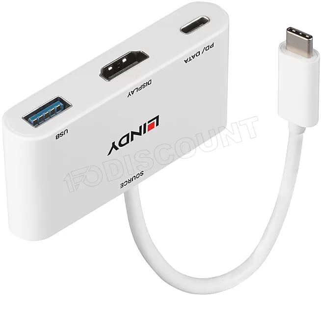 Convertisseur Lindy USB C mâle vers HDMI femelle & USB A + C femelle (Blanc)