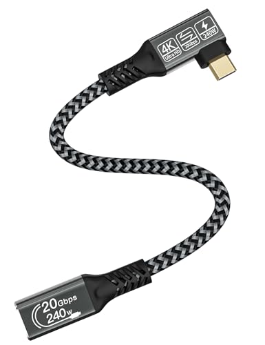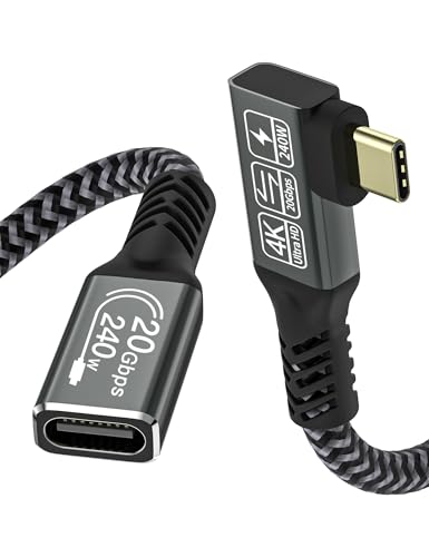 CAKOBLE Erallonge usb c 50cm coudé, usb c femelle vers male rallonge usb 3.2 240W 20Gbps Rallonge USBC Vidéo 4K 60Hz USB Type-C en Nylon Tressé Compatible Mackbook