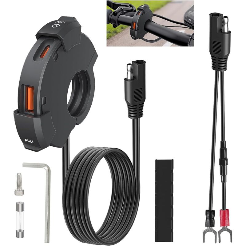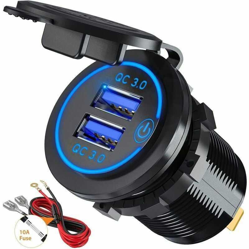 Akozon Chargeur USB pour Guidon de Moto 12 V avec Prise Allume-Cigare USB étanche pour téléphone GLF