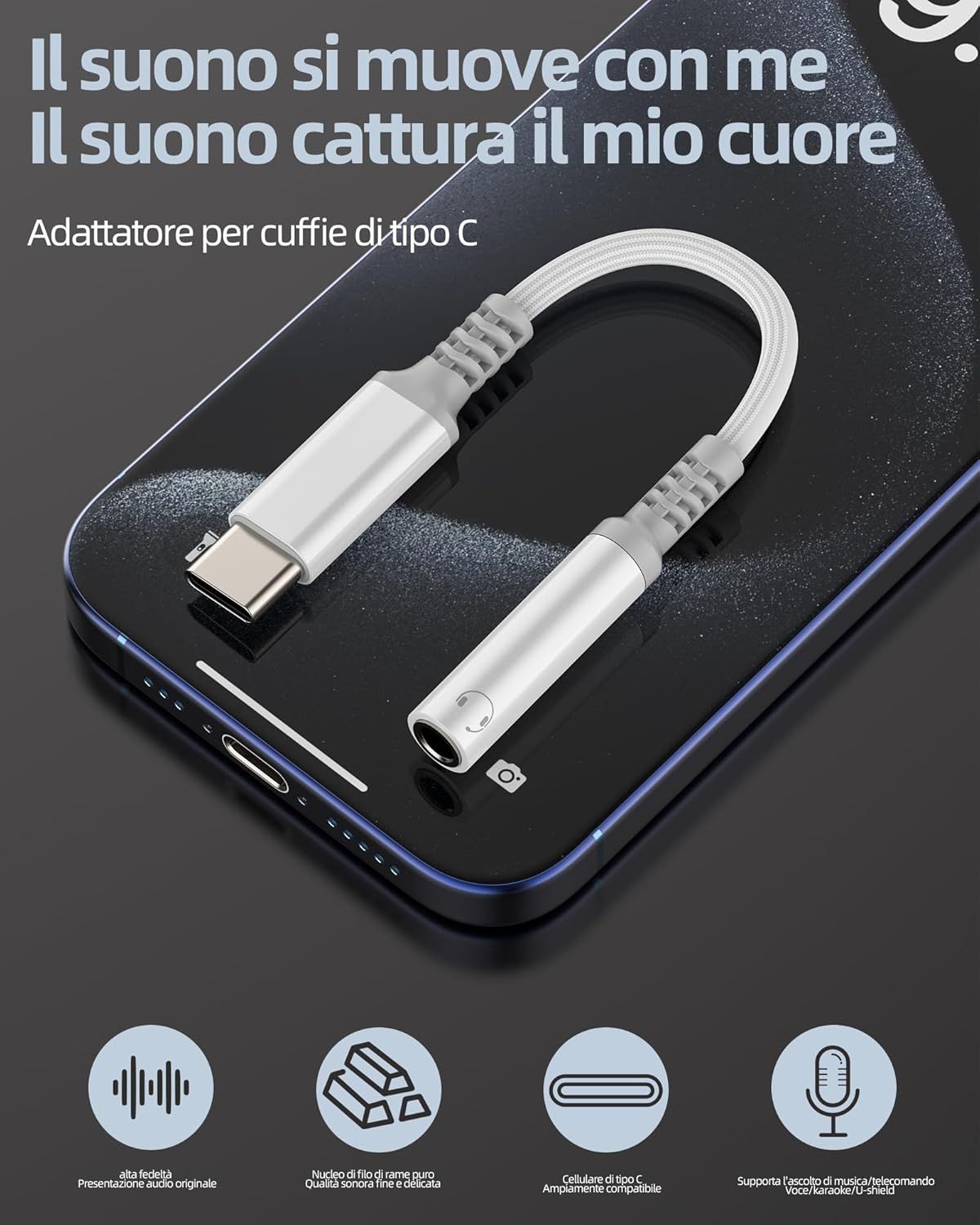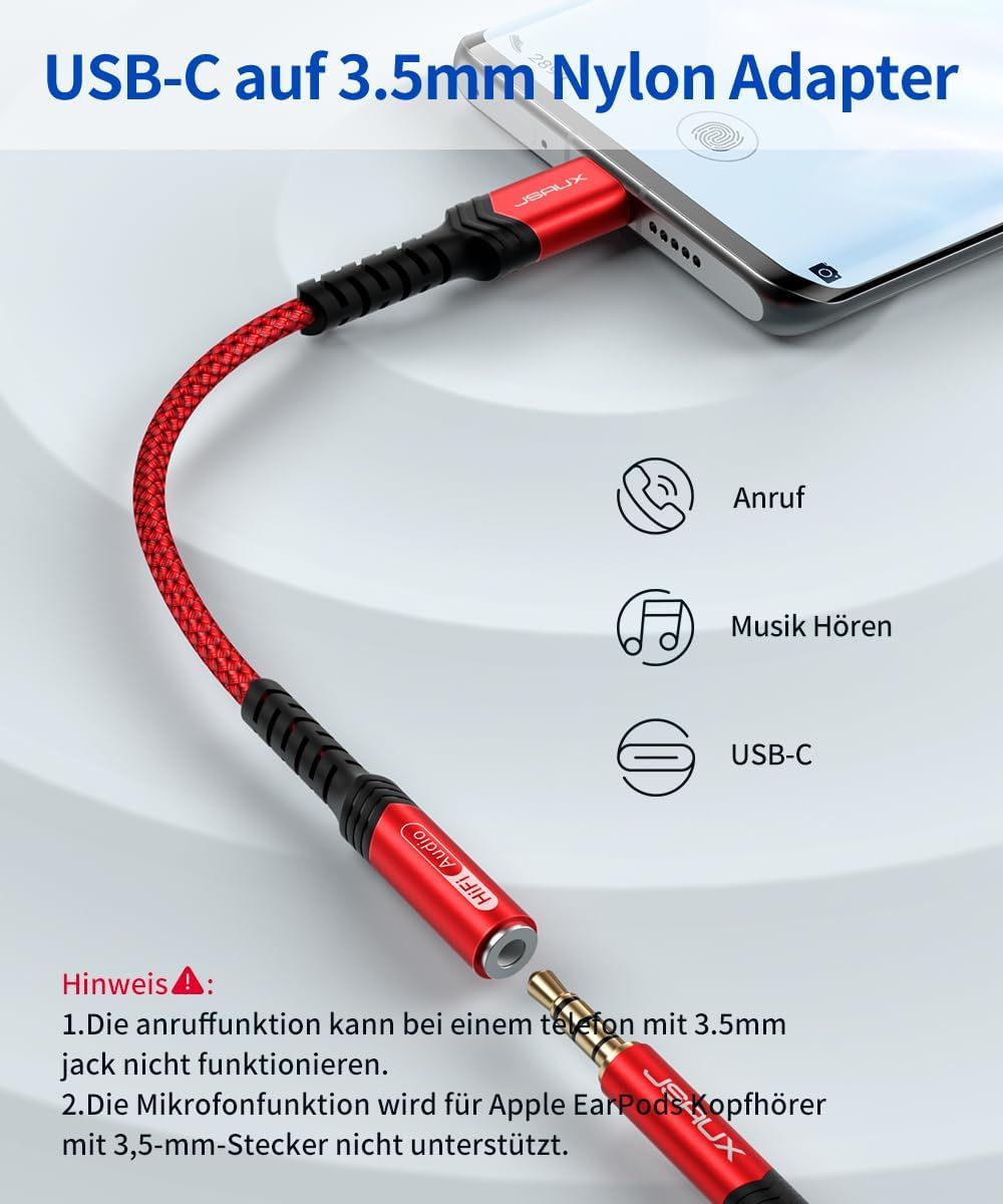 USB C to 3.5 mm Jack Cable,1 m Aux 3.5 mm Jack to USB C Audio Cable with Microphone,High Quality Nylon Braided Auxiliary Cable Compatible with iPhone,Galaxy S24,Wireless Headphones