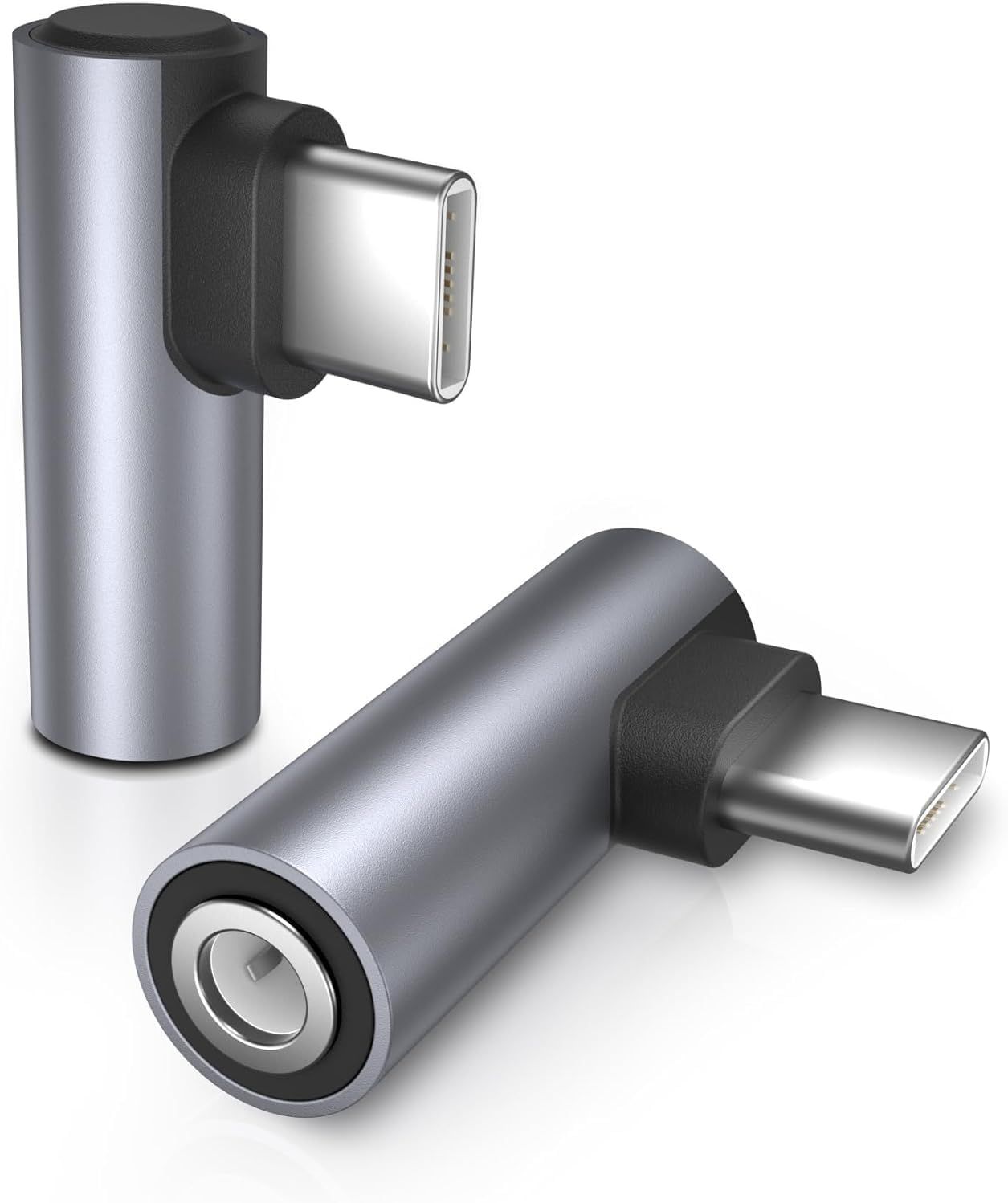 USB C to Jack Adapter 2pcs 90 Degree Angle USB C Headphone Adapter with DAC Chip USB C to Jack 3.5 Adapter for S23/S22/S21Ultra,iPad Pro,Pixel,Oneplus,iPhone 15 (Grey)