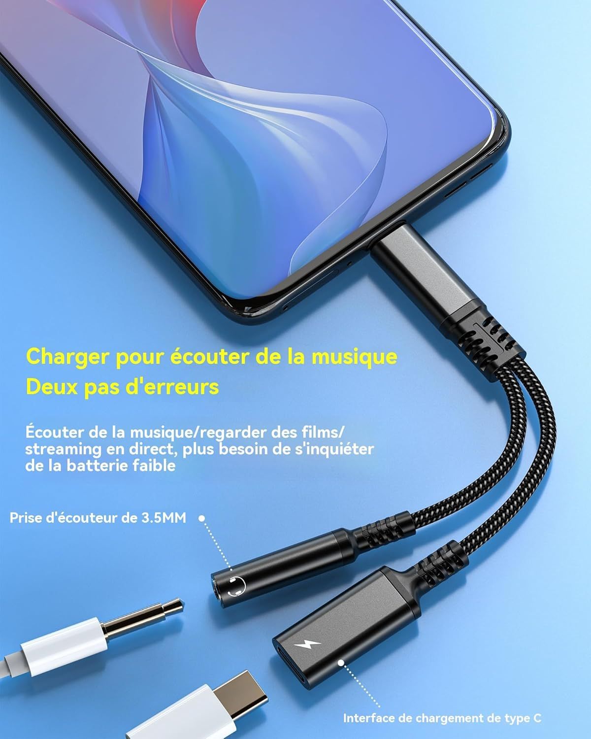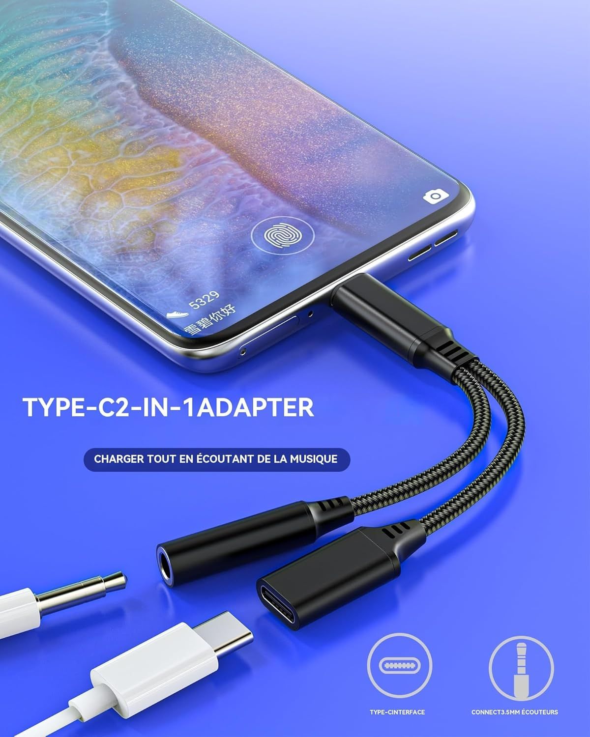 Usb C To 3.5 Mm Jack Earphone Adapter (2 In 1) Type C Charger Cable Car Aux Earphone Audio Extension Cable Headphone Accessory Dual Socket Adapter For Apple Iphone 15 Pro Max Plus Ipad Pro Air Mini