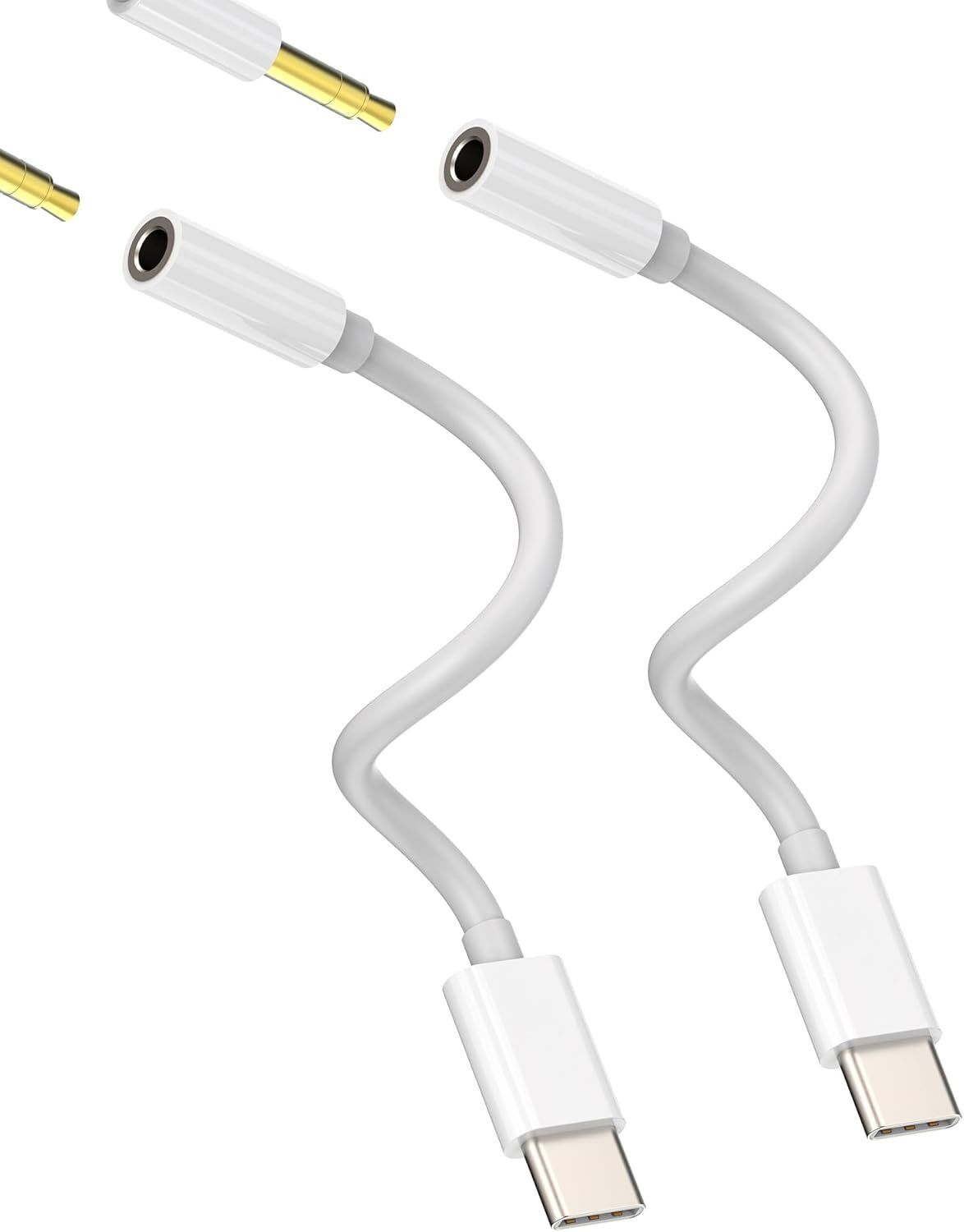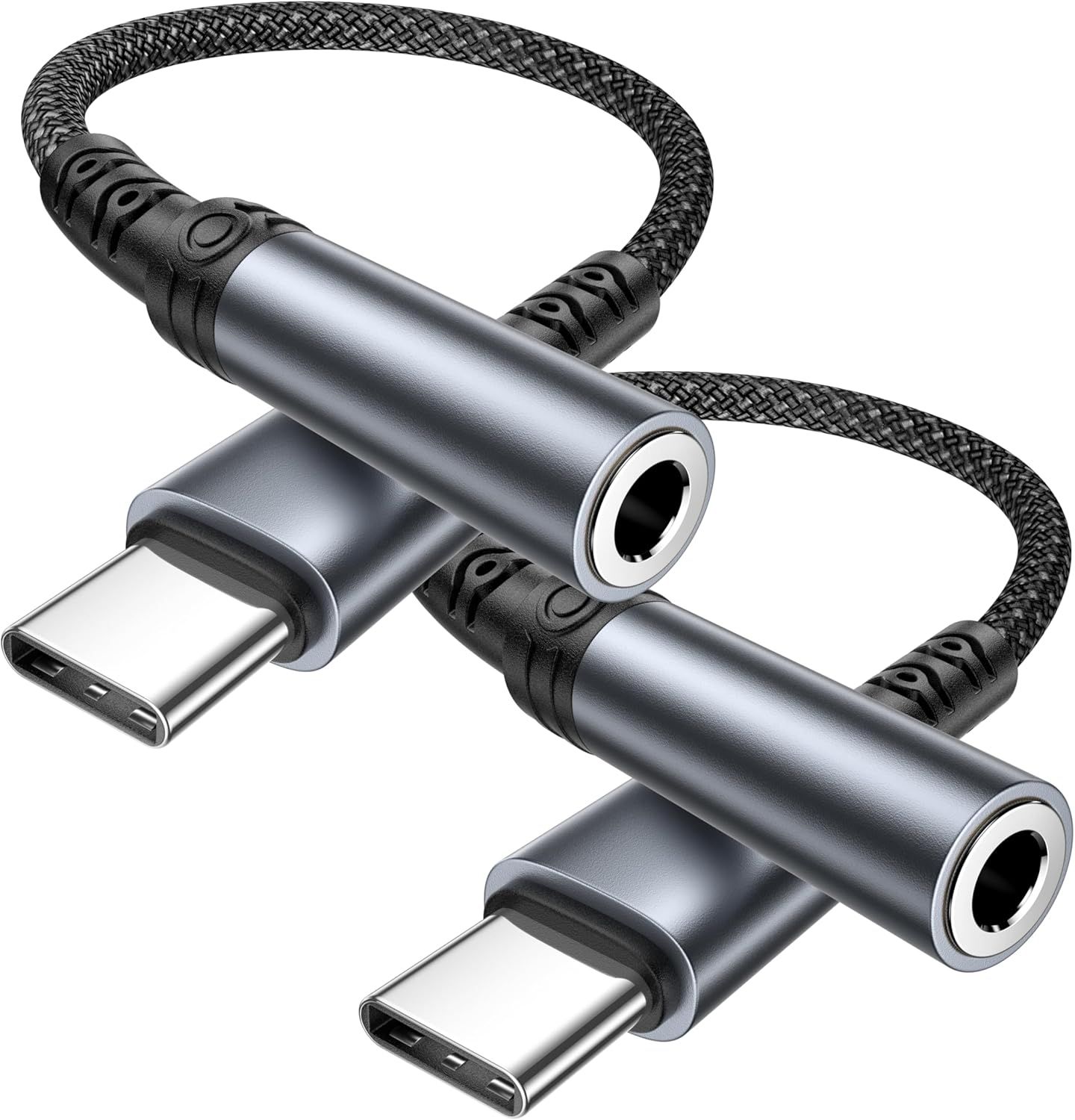 Usb C Jack Adapter 3.5 Mm,2 Pack Usb C Jack Plug Adapter,Type C To Aux Digital Audio Earphone Adapter With Dac For S25 S24 S23 S22,Iphone 16 Pro Max/16 Plus/16e/15 Pro,Ipad Pro