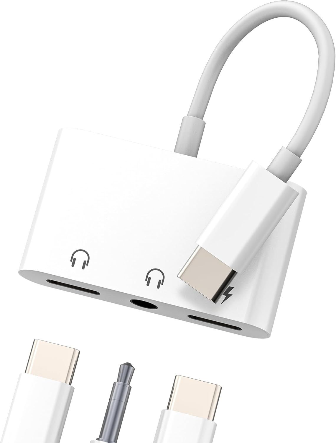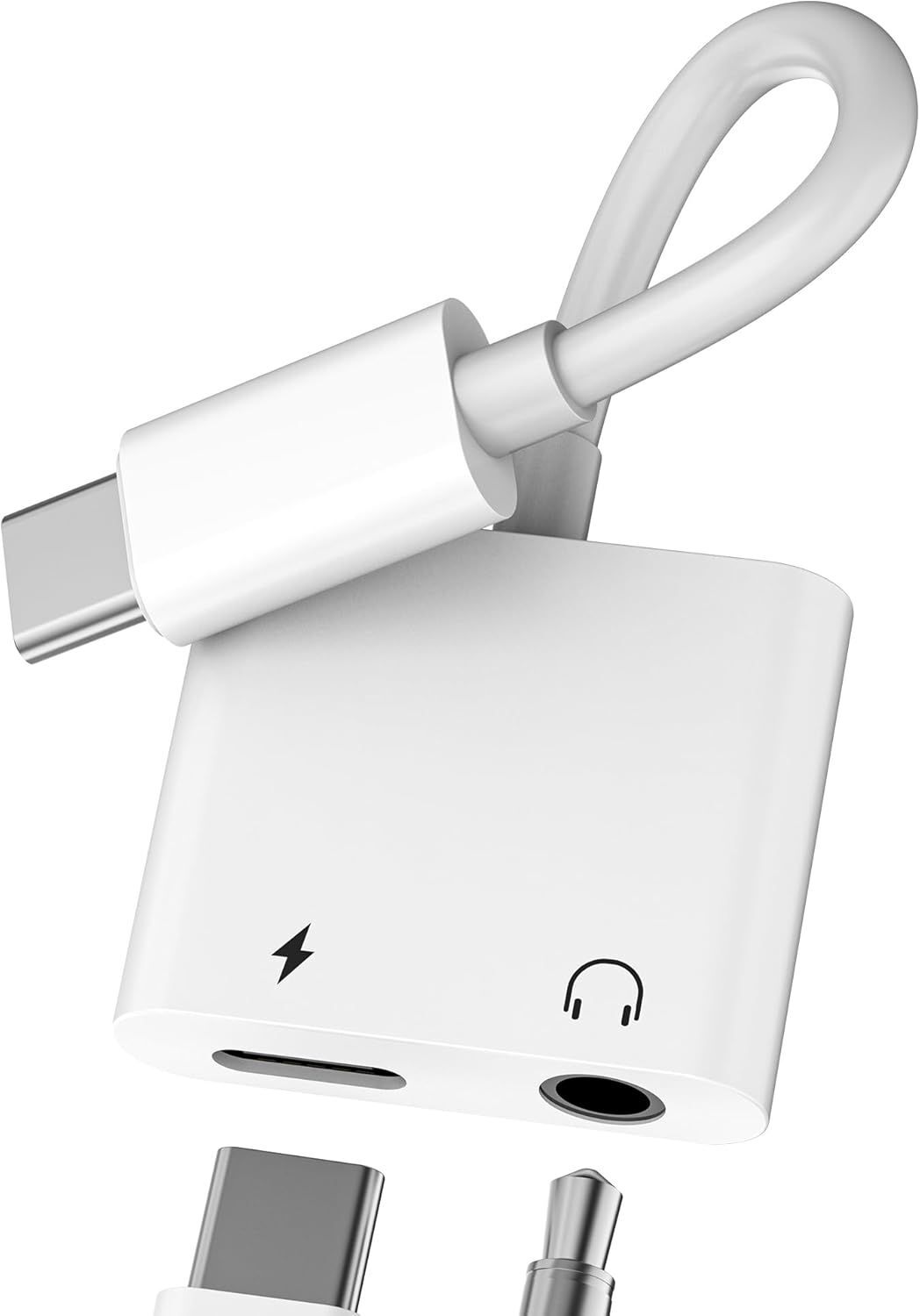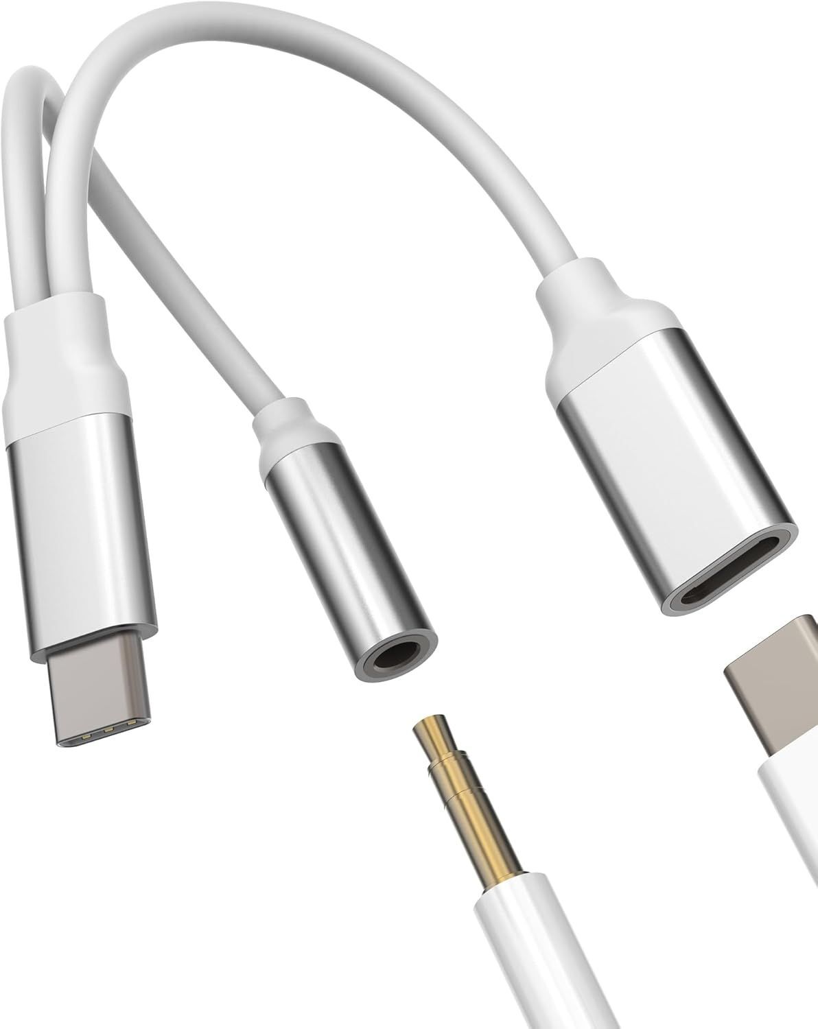 Usb C To 3.5 Mm Headphone Jack Adapter (2 In 1) For Iphone 16 15 Pro Connector Compatible With Aux Dac Audio For Ipad Type C Charger Cable For Apple Headphone Headphone Microphone Splitter
