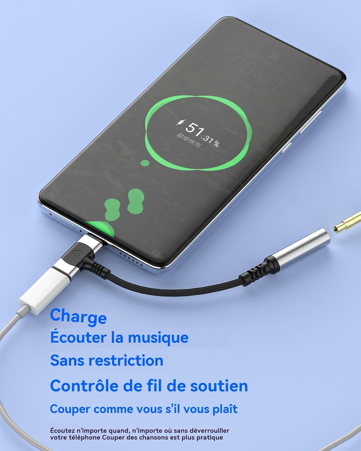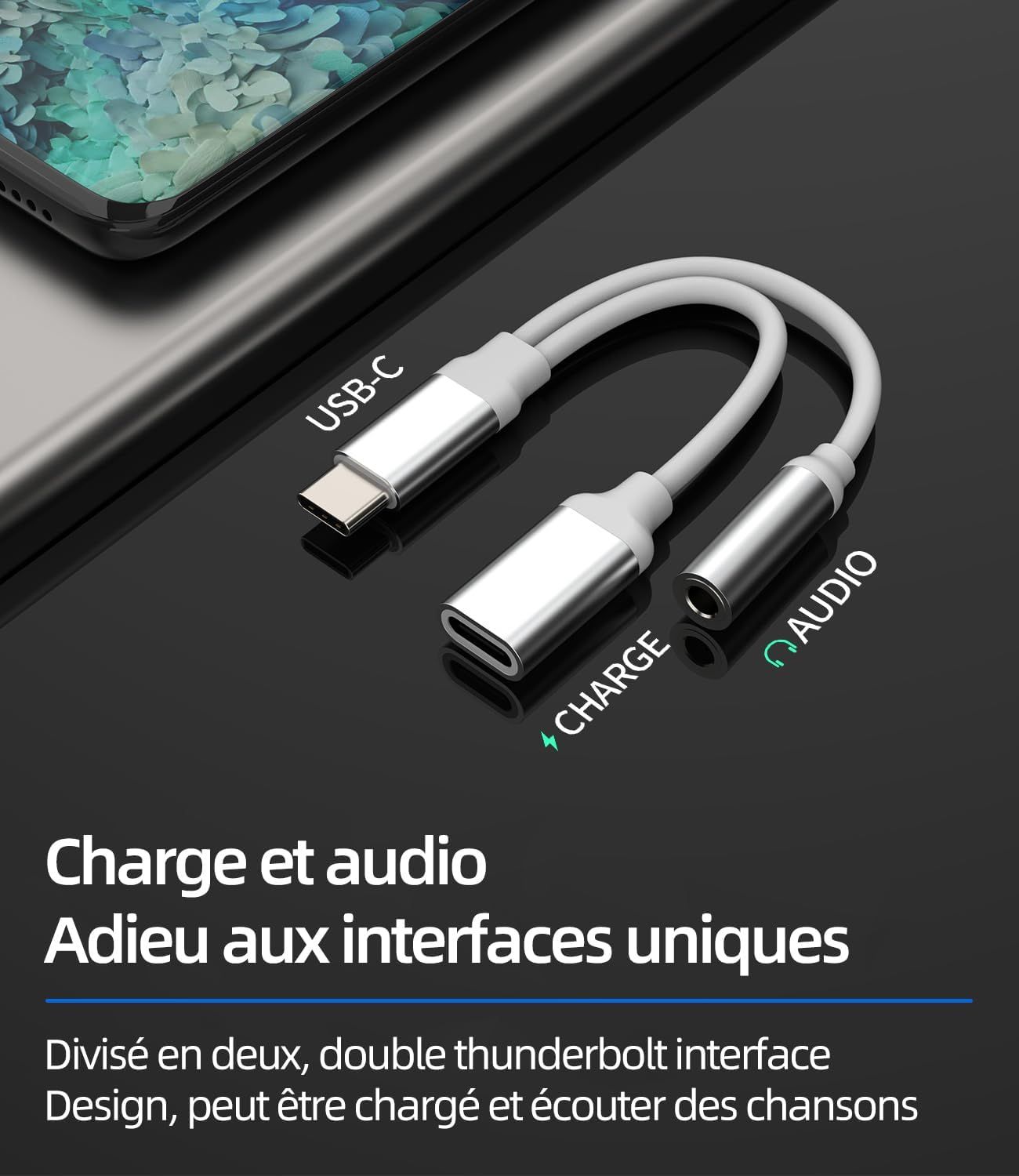 Usb C To Jack Adapter 3.5 Mm Earphone Cable (2 In 1) Headphone Charger Usb-C Earphone Dac Audio Compatible For Huawei Xiaomi Redmi S21 Dual Socket Car Aux Aux Aux Adapter Cable