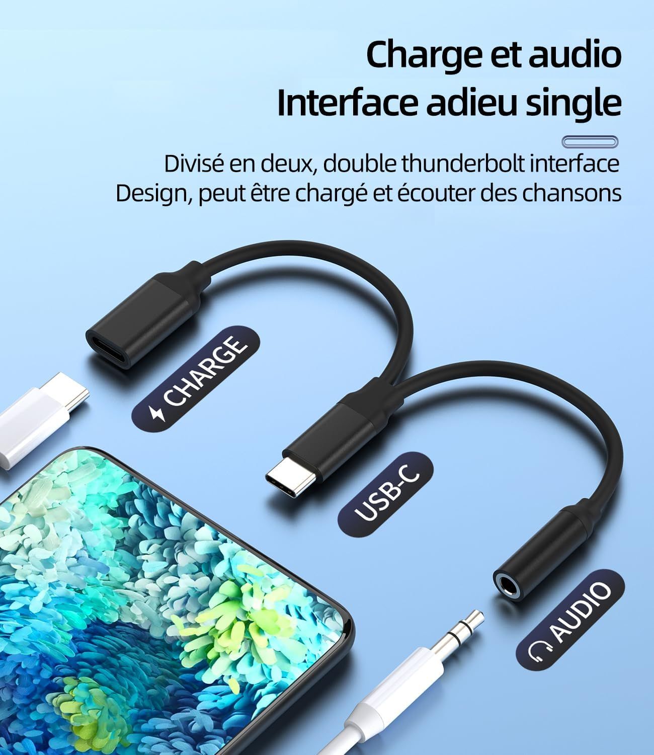 Adapter Jack USB C to 3.5 mm Earphone (2 in 1) for IPhone16 15 Pro Max Earphone and Charger Cable Compatible with S24 S23 AUX Connector for Apple DAC Audio For iPad Headphone Jack