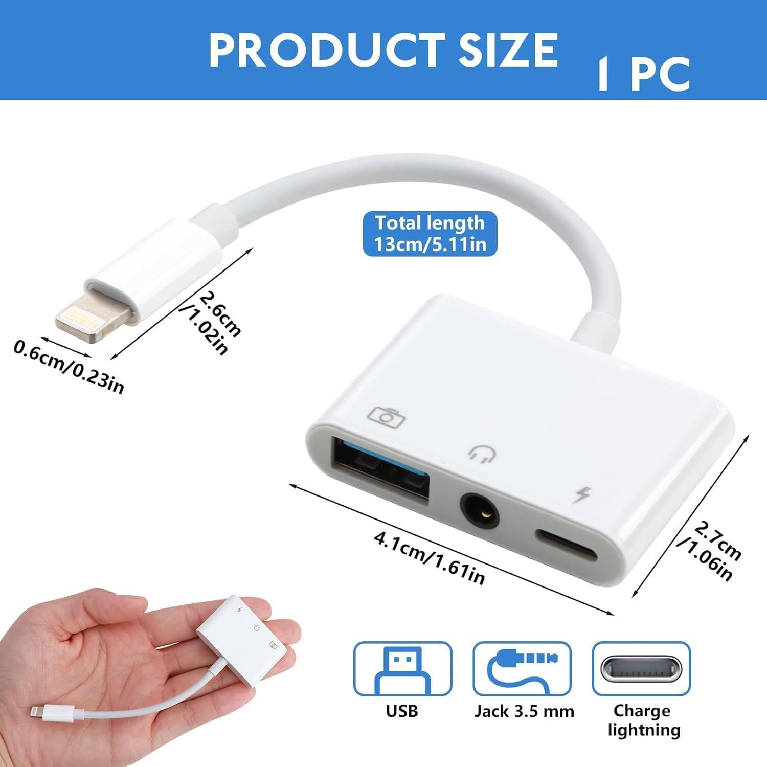 3 In 1 Adapter For I-Phone/I-Pad,Universal Lightn-Ing To 3.5 Mm Jack/Charging/Usb,Multiport Audio Connector Headphone Splitter,Adapter Compatible With I-Product