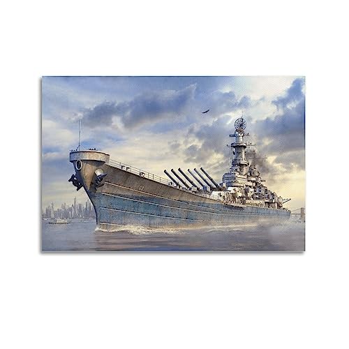 NOHF Poster Battleship pour USS Missouri Battleship - Art mural rétro esthétique - Décoration de chambre - Peinture sur toile pour la maison et le bureau - 50 x 75 cm - Sans cadre