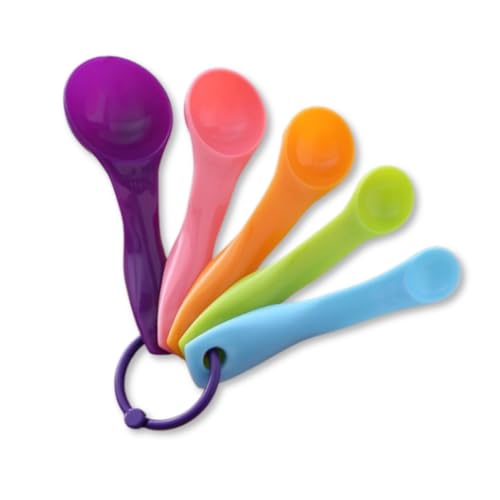 PARENCE.- Ensemble de 5 Cuillères Doseuses en Plastique Colorées – de 1 à 15 ml/g – Cuillères de Mesure Cuisine et Pâtisserie avec Anneau d’Accroche – Ustensile Dosage Précis)