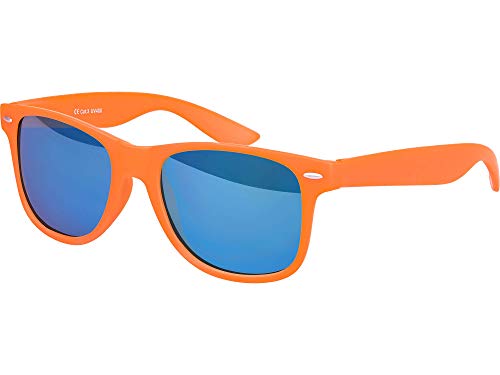 Balinco Lunettes de soleil UV400 CAT 3 CE Rubber - avec charnière à ressort pour femmes & hommes (orange - bleu miroité)