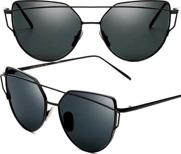 Lunettes de soleil œil de chat miroirs, noires, montures en métal, filtre UV 400 cat 3