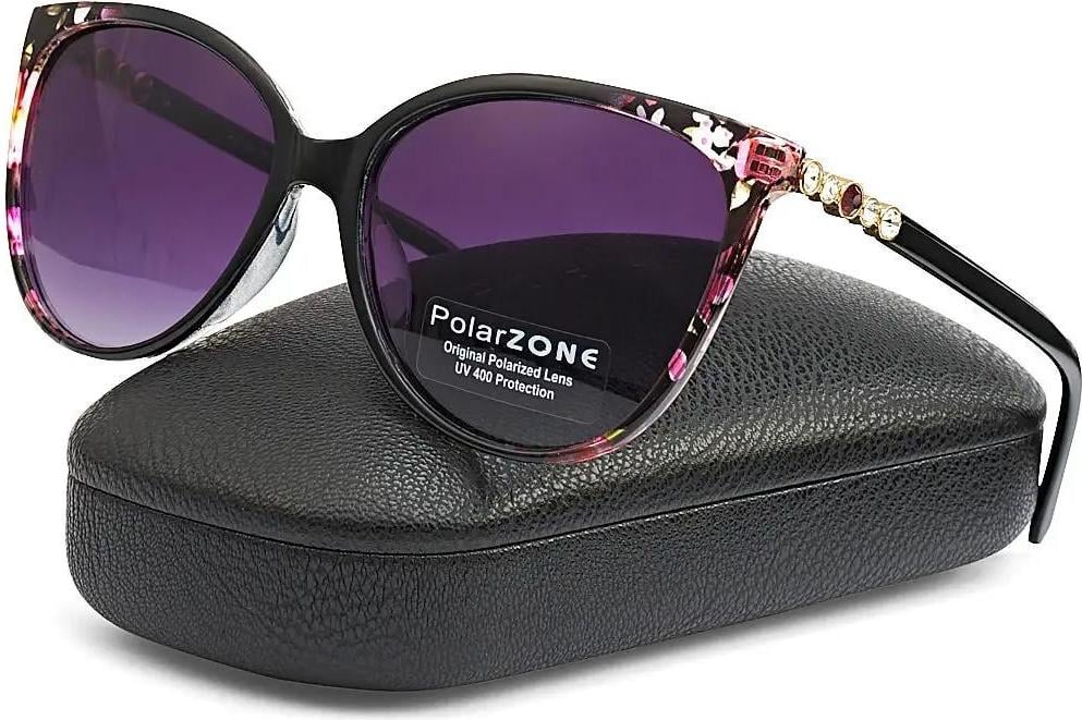 Camerazar Lunettes de soleil polarisées pour femmes avec yeux de chat, noires avec fleurs, filtre UV-400 cat 3