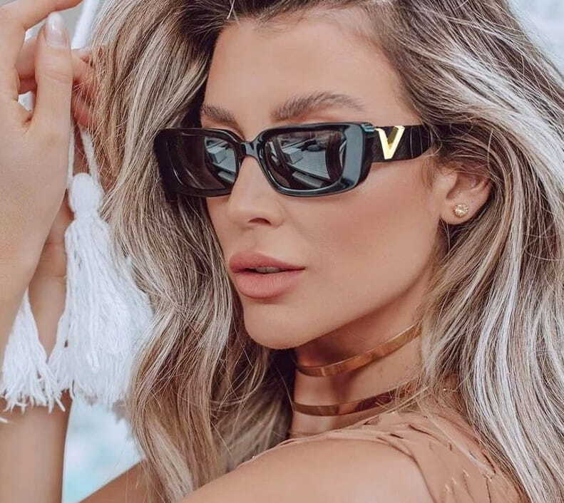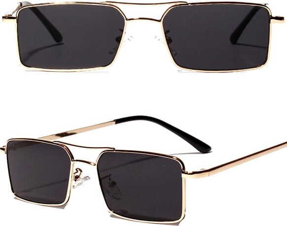 Lunettes de soleil unie avec verres rectangulaires, filtre UV 400 cat 3, style rétro, largeur des verres 55 mm