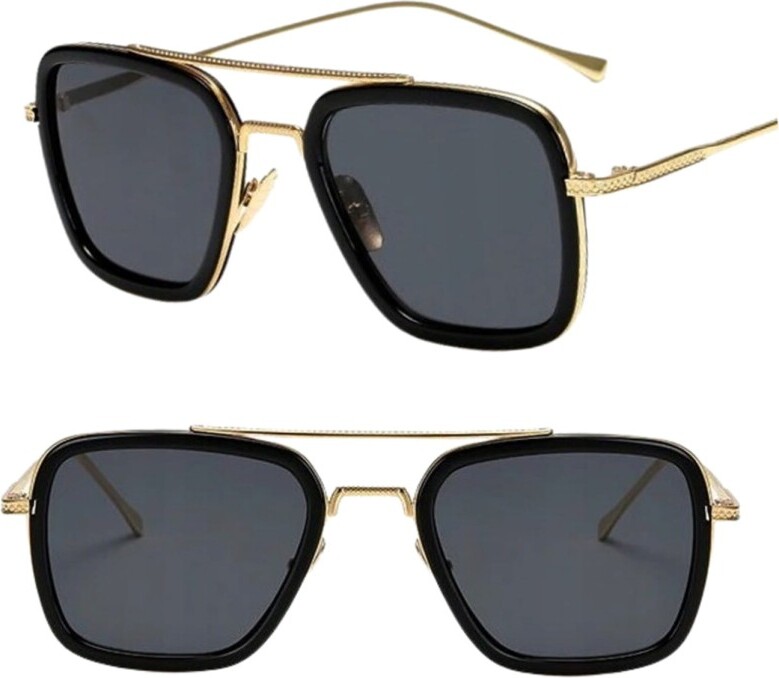 Lunettes de soleil RETRO STYLE pour homme, polarisées, monture en plastique et métal doré, filtre UV 400 cat 3
