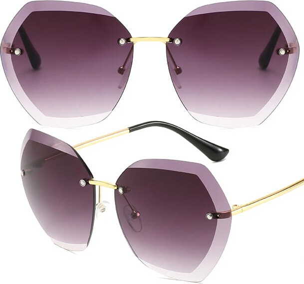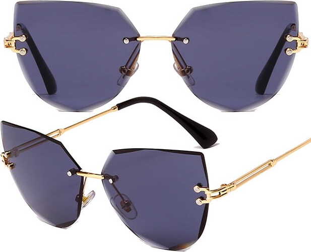 Lunettes de soleil sans monture pour femmes avec verres œil de chat, gris/rose/marron clair, métal, filtre UV 400 cat 3