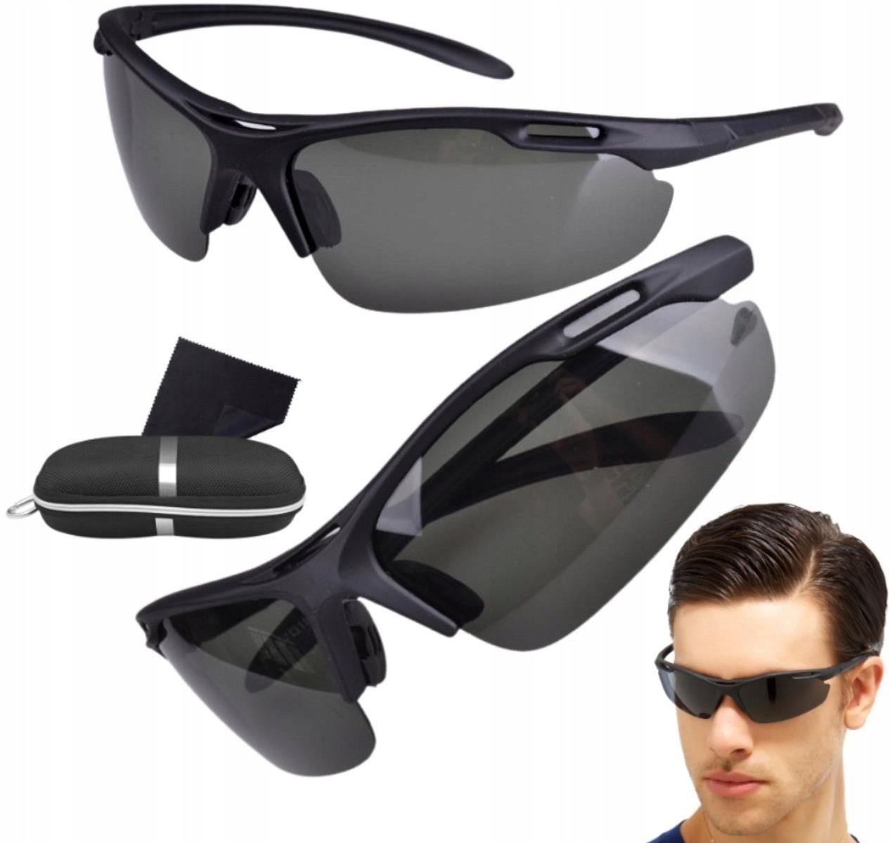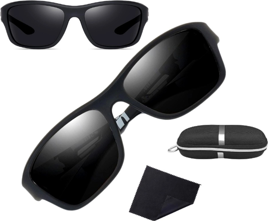 Lunettes de soleil sport pour homme, polarisées, noires, monture en plastique, filtre UV 400 cat 3