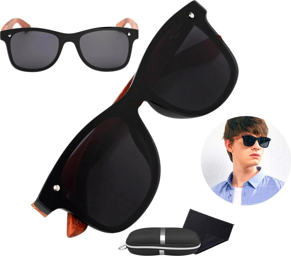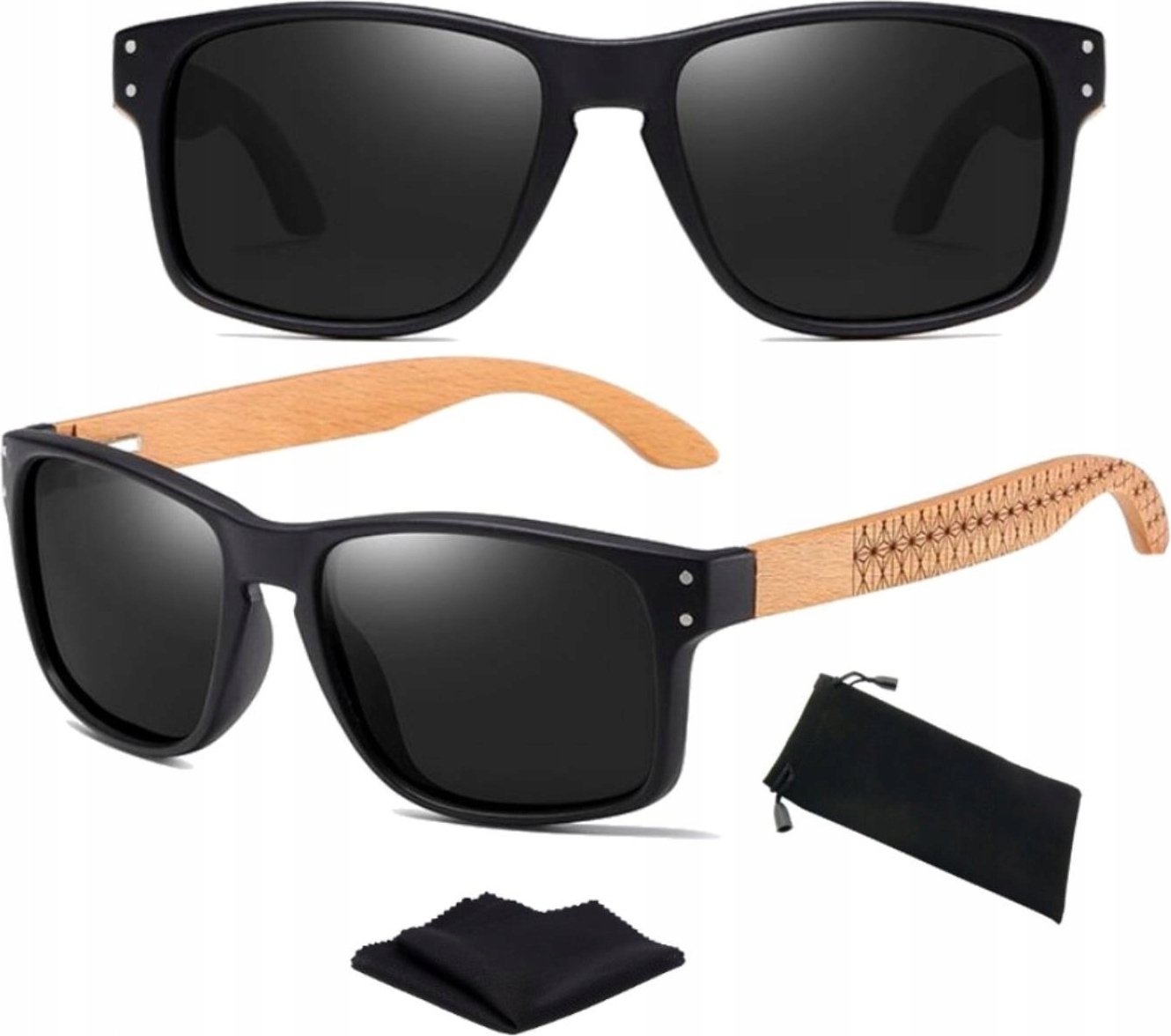 Lunettes de soleil sport pour homme avec verres polarisés, noires avec verres en bambou, filtre UV 400 cat 3