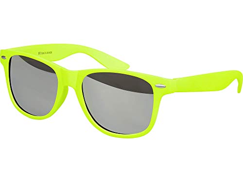 Balinco Lunettes de soleil UV400 CAT 3 CE Rubber - avec charnière à ressort pour femmes & hommes (jaune fluo - argent miroité)