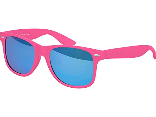 Balinco Lunettes de soleil UV400 CAT 3 CE Rubber - avec charnière à ressort pour femmes & hommes (rose - bleu miroité)