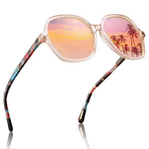 TSEBAN Rétro Lunettes de Soleil Femme Polarisées, UV 400 Lunettes de Soleil Luxe Catégorie 3 pour Conduite et Randonnée CA32R