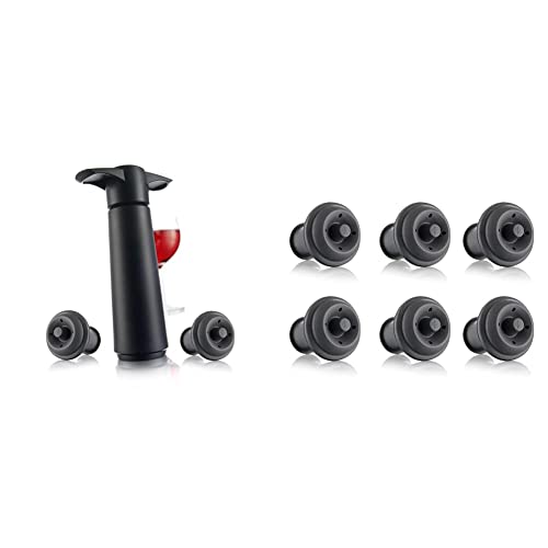 Vacu Vin 09814606 Pompe à Vide - Noir + 6 pièces-bouchons pour pompe vide-gris