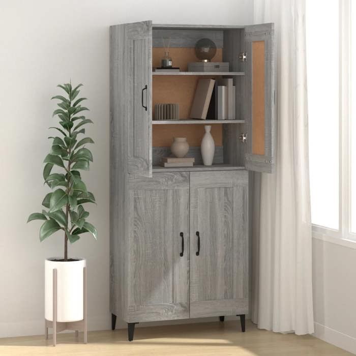 Buffet de cuisine, armoire vaisselier avec 2 placards 2 tiroirs, étagère réglable, pour salon (noir)