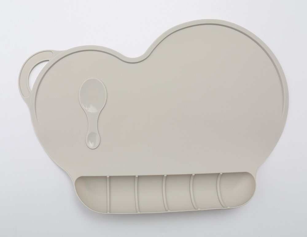 Tapis de Table en Silicone pour Bébé avec Bordure de Dentition et Anti-Renversements - Lavable au Lave-Vaisselle, Antidérapant pour Enfants et Nourrissons - Pratique pour Voyage (Light Grey)