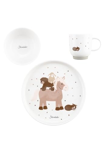 Sterntaler Service de table en porcelaine de la ferme - Avec socle en silicone antidérapant et amovible - Vaisselle pour bébé et enfant avec assiette, bol de 400 ml et tasse de 200 ml - Blanc