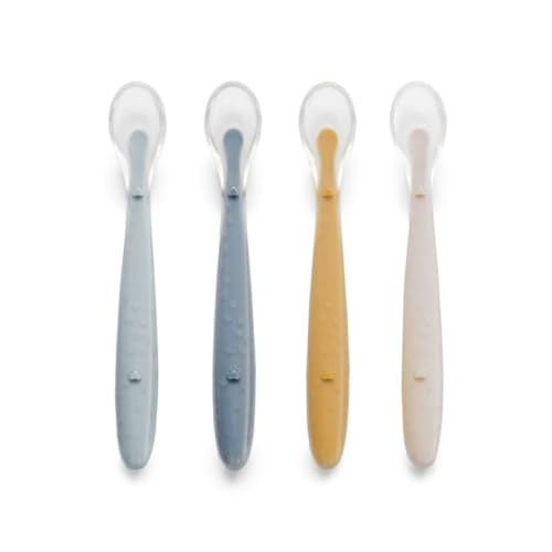 Jané Lot de 4 Cuillères en Silicone pour Bébé et Enfant, Souple, Bout arrondi, Sans BPA, Lavable au lave-vaisselle, Colour Sunset